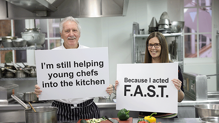 TV Chef Brian Turner CBE: “I’m so grateful to my agent Louise for spotting I was experiencing a stroke and getting me help. I can’t emphasise enough how vital it is to call 999 when you notice any of the signs of a stroke. Thanks to her, I was able to receive medical attention quickly, meaning I’m now back on my feet and helping the next generation of young chefs into the kitchen.”